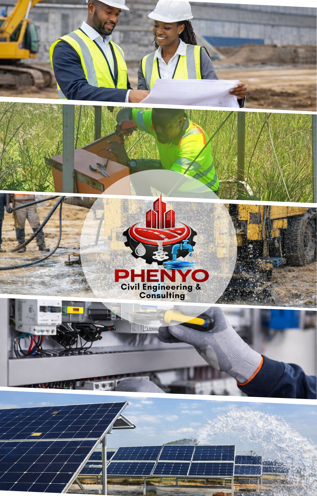 Borehole investigation and yield testing. Borehole drilling, construction, and refurbishment. Water supply system design and implementation. Pump installation and commissioning. Borehole housing and protection structures.